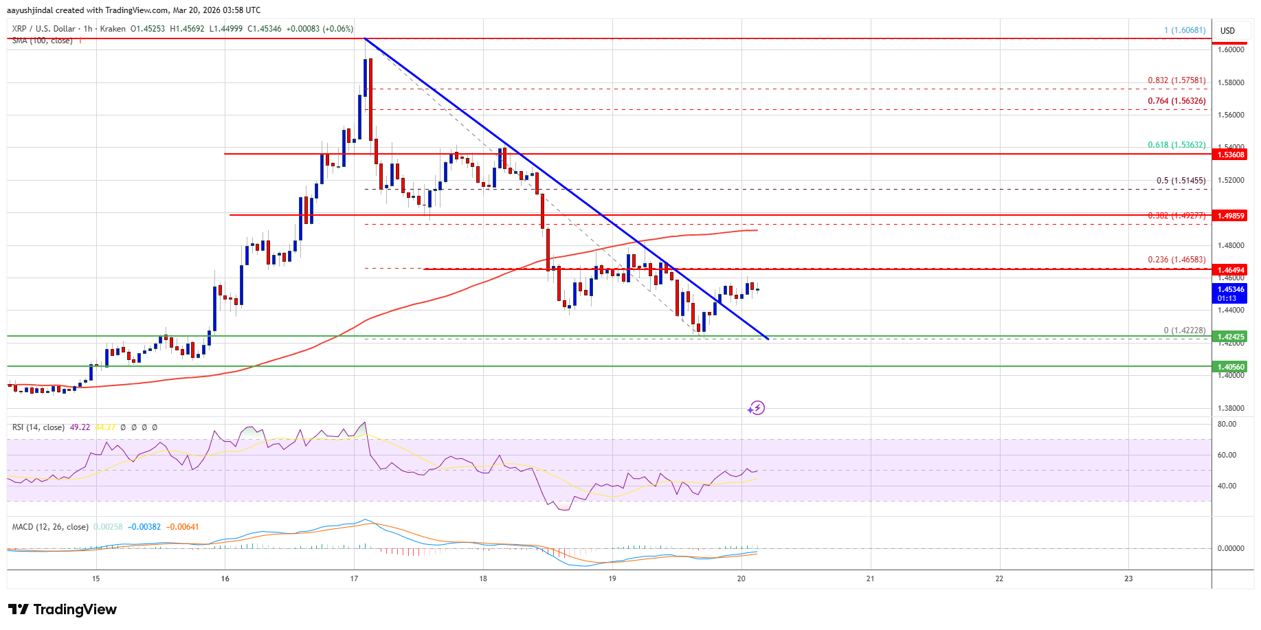 XRP Price Drifts Lower, All Eyes on Bulls Defending $1.42 Zone